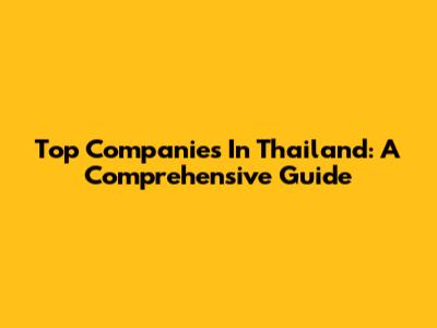 Top Companies In Thailand: A Comprehensive Guide
