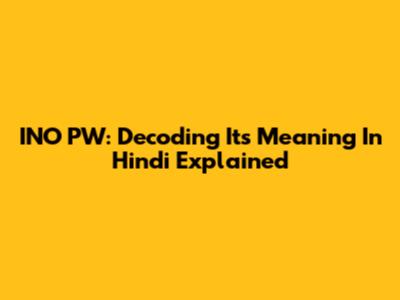 INO PW: Decoding Its Meaning In Hindi Explained