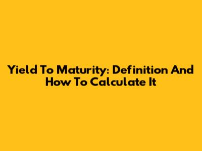 Yield To Maturity: Definition And How To Calculate It