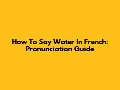 How To Say Water In French: Pronunciation Guide
