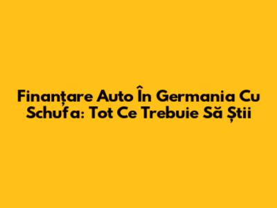 Finanțare Auto În Germania Cu Schufa: Tot Ce Trebuie Să Știi