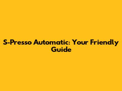S-Presso Automatic: Your Friendly Guide