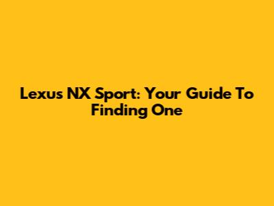 Lexus NX Sport: Your Guide To Finding One