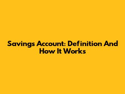 Savings Account: Definition And How It Works