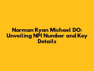 Alright, let's dive into everything you need to know about Norman Ryan Michael DO, including that all-important NPI number! Understanding the details of healthcare providers can sometimes feel like navigating a maze, but we're here to make it super simple and straightforward. Whether you're a patient, a fellow healthcare professional, or just curious, this guide will provide you with all the essential information about Norman Ryan Michael DO.