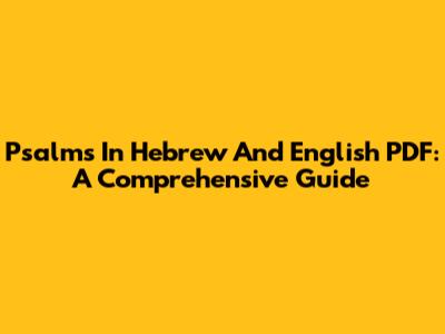 Psalms In Hebrew And English PDF: A Comprehensive Guide
