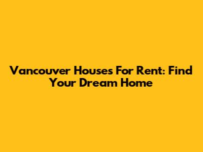 Vancouver Houses For Rent: Find Your Dream Home