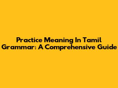 Practice Meaning In Tamil Grammar: A Comprehensive Guide