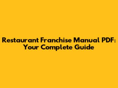 Restaurant Franchise Manual PDF: Your Complete Guide