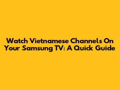 Watch Vietnamese Channels On Your Samsung TV: A Quick Guide