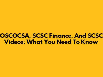 OSCOCSA, SCSC Finance, And SCSC Videos: What You Need To Know