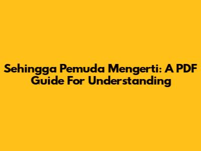 Sehingga Pemuda Mengerti: A PDF Guide For Understanding