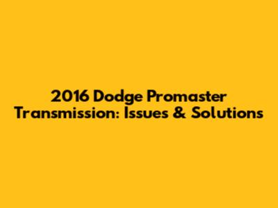 2016 Dodge Promaster Transmission: Issues & Solutions