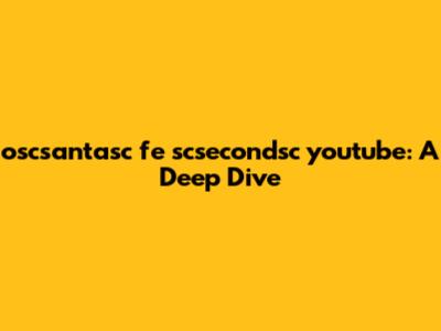 - Username Related: "oscsantasc" could be a user's handle, and the rest might be related to their video content. For example, they might have a video series where they use "fe" (for example) to illustrate something, and "scsecondsc" could refer to a specific timing aspect within their videos. To investigate this scenario, searching for the username "oscsantasc" on YouTube and analyzing their video titles, descriptions, and content would be essential. Look for patterns or themes that might relate to the other components of the phrase.