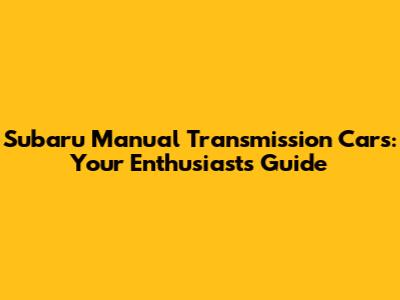 Subaru Manual Transmission Cars: Your Enthusiast's Guide