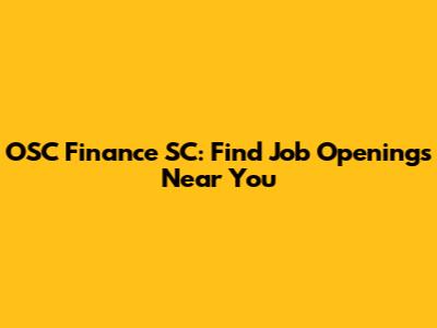 OSC Finance SC: Find Job Openings Near You