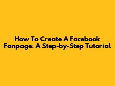 How To Create A Facebook Fanpage: A Step-by-Step Tutorial