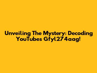 Unveiling The Mystery: Decoding YouTube's Gfyl274aag!