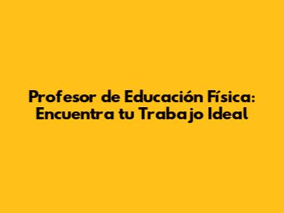 Profesor De Educación Física: Encuentra Tu Trabajo Ideal