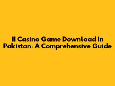 II Casino Game Download In Pakistan: A Comprehensive Guide