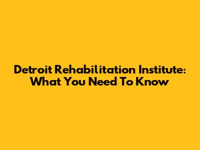 Detroit Rehabilitation Institute: What You Need To Know