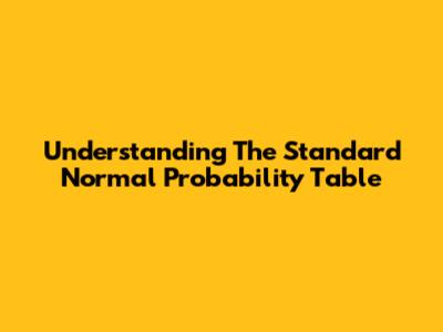 Understanding The Standard Normal Probability Table