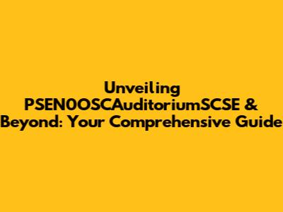 Unveiling PSEN0OSCAuditoriumSCSE & Beyond: Your Comprehensive Guide