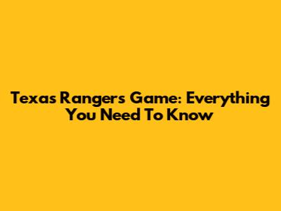Texas Rangers Game: Everything You Need To Know