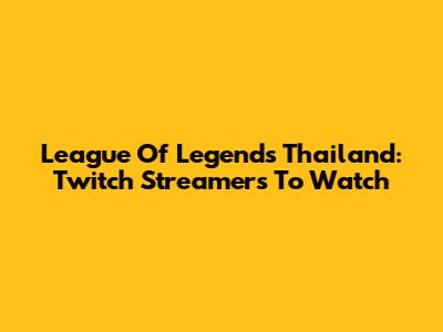 League Of Legends Thailand: Twitch Streamers To Watch