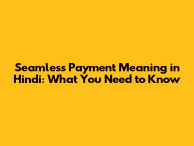 Seamless Payment Meaning In Hindi: What You Need To Know
