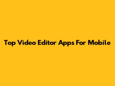 Top Video Editor Apps For Mobile