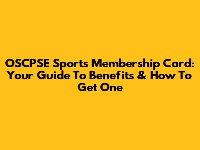 OSCPSE Sports Membership Card: Your Guide To Benefits & How To Get One