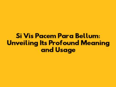 Hey everyone, let's dive into something super interesting today – the Latin phrase Si Vis Pacem Para Bellum. You've probably heard it before, maybe in movies, books, or even just tossed around in conversations. But what does it really mean? And, more importantly, how can we understand its depth and its relevance to modern life? We're going to break it down, explore its history, and see how this classic saying still resonates with us today. Get ready to have your mind a little blown – it's a good one!