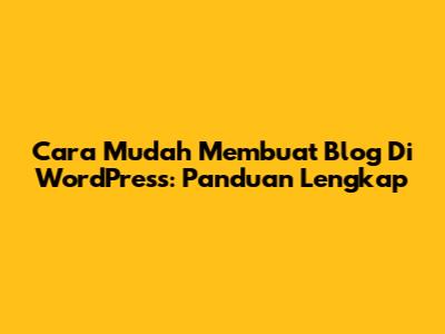 Cara Mudah Membuat Blog Di WordPress: Panduan Lengkap