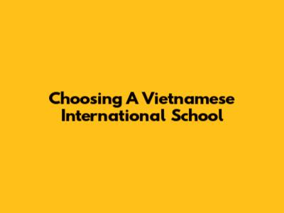 Choosing A Vietnamese International School