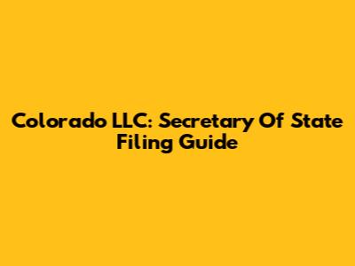 Colorado LLC: Secretary Of State Filing Guide