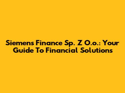 Siemens Finance Sp. Z O.o.: Your Guide To Financial Solutions