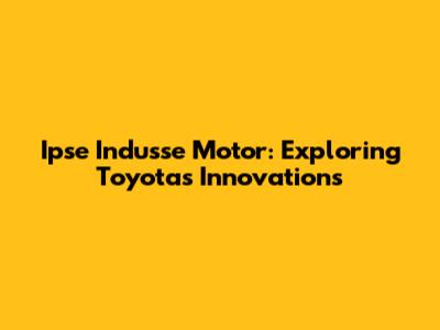 Ipse Indusse Motor: Exploring Toyota's Innovations