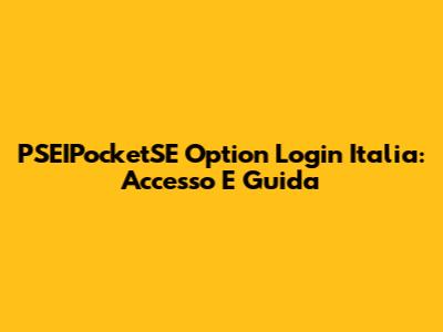 PSEIPocketSE Option Login Italia: Accesso E Guida