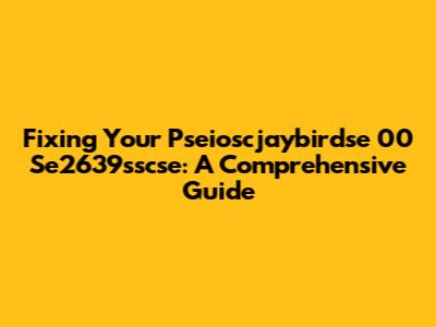 Fixing Your Pseioscjaybirdse 00 Se2639sscse: A Comprehensive Guide