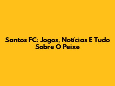 Santos FC: Jogos, Notícias E Tudo Sobre O Peixe