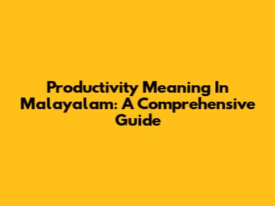 Productivity Meaning In Malayalam: A Comprehensive Guide