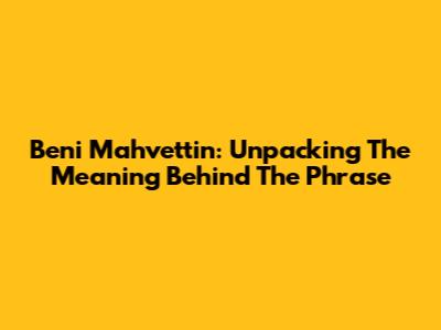 Beni Mahvettin: Unpacking The Meaning Behind The Phrase