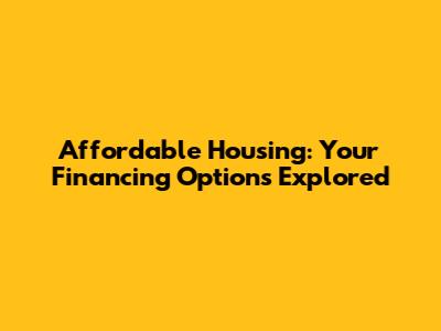 Affordable Housing: Your Financing Options Explored