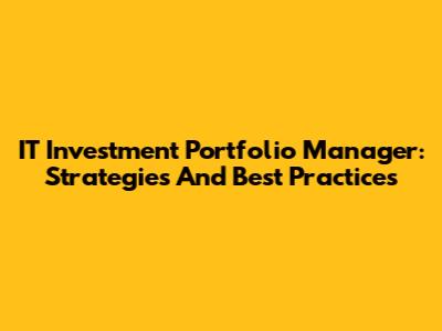 IT Investment Portfolio Manager: Strategies And Best Practices