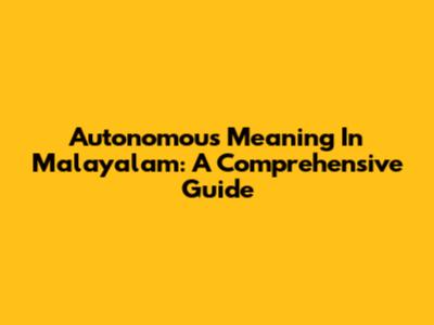 Autonomous Meaning In Malayalam: A Comprehensive Guide