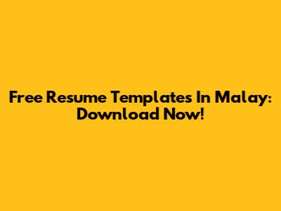 Free Resume Templates In Malay: Download Now!