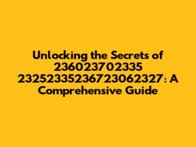 Hey there, tech enthusiasts and curious minds! Ever stumbled upon a sequence of numbers and wondered what secrets they held? Today, we're diving deep into the fascinating world of 236023702335 23252335236723062327. This isn't just a random string; it's a potential key to understanding various aspects. In this guide, we'll unravel the mysteries behind this number sequence, exploring its potential meanings, applications, and significance. Get ready to embark on an exciting journey of discovery, where we'll decode the hidden messages within 236023702335 23252335236723062327 and uncover its true potential. We'll examine its context, possible interpretations, and how it might relate to different fields. So, buckle up, and let's decode this intriguing number sequence together. By the end of this guide, you'll have a solid understanding of what 236023702335 23252335236723062327 could represent and its implications. This article aims to provide a clear and engaging explanation, ensuring everyone can grasp the core concepts. Ready to begin? Let's get started!