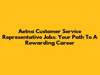 Aetna Customer Service Representative Jobs: Your Path To A Rewarding Career