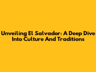 Unveiling El Salvador: A Deep Dive Into Culture And Traditions